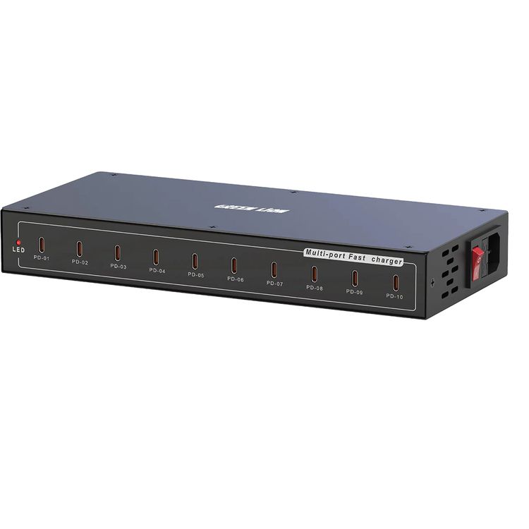 Green Lion PD Multi Ports 10 Charging Station with High Voltage Protection, Low Voltage Protection, Reverse Power Protection, Short Circuit Protection, Overheat Protection, Safe & Secure Fast Charging, 200W Power - Black