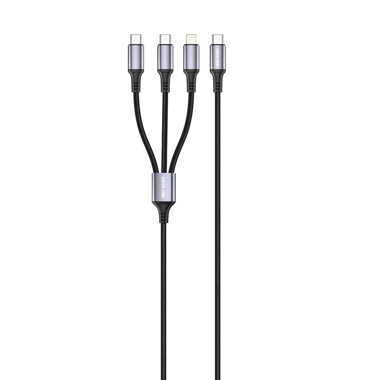 Green Lion 3-in-1 USB-C to USB-C1/USB-C2 Lightning Cable, 60W Fast Charging, Secure & Safe, Charge & Sync, Aluminum Alloy Material, 480Mbps Data Transfer Speed - Black