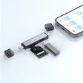 Green Lion 3-in-1 Card Reader with USB-C & Lightning Connectivity, Keychain Lanyard, Aluminum Alloy Material, Plug & Play, Universal Compatibility, 480Mbps Transfer Speed - Gray