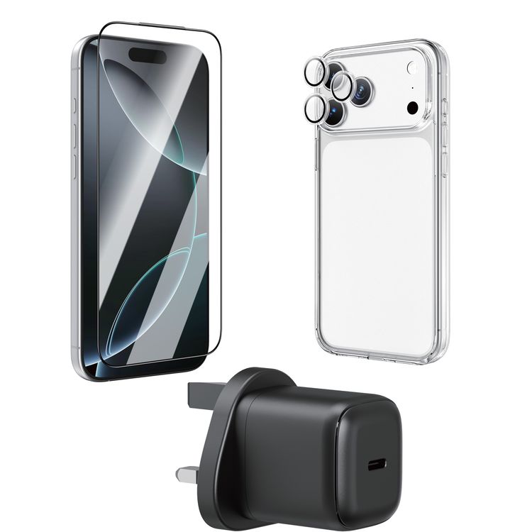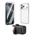 Green Lion 4-in-1 Combo Essentials for iPhone 17 Pro, Shockproof Clear Case, 3D Curved Clear Glass, GaN Fast Charger, HD Clear Camera Lens, 45W Power Delivery - Clear