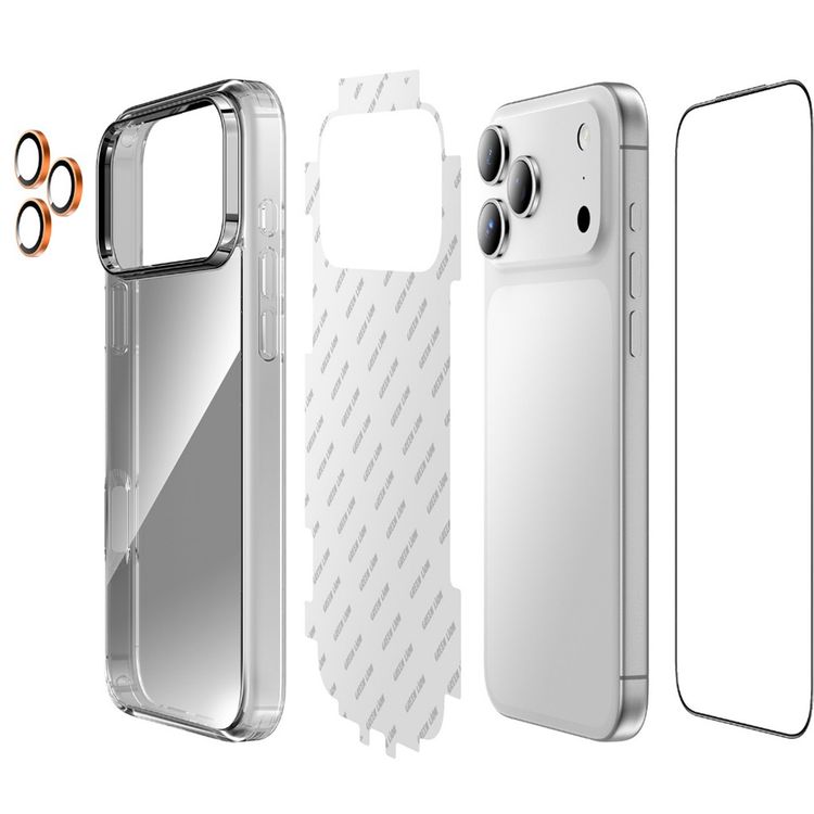 Green Lion 4-in-1 Defender Pack for iPhone 17 Pro Max, Anti-Shock Case, Anti-Fingerprint Camera Lens, Anti-Broken Edges Glass, 360° Comprehensive Protection Case, Anti-Yellowing Case, Anti-Scratch Camera Lens, HD Clarity Glass, Full Protection, High Quality - Orange Titanium