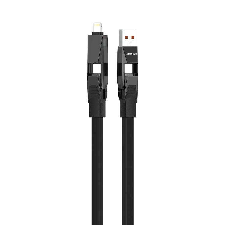 Green Lion 4 in 1 Fast Charging Cable with 240W Output, 1.2M Cable Length, Wide Compatible, 480Mbps Transfer Speed, TPU Cable - Black
