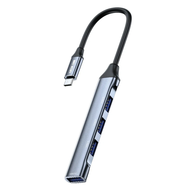 Green Lion 4 IN 1 USB-C Hub & Docking Station Adapter, PD 100W, 1×USB-A 3.0 & 3×USB-A 2.0 Ports, Plug & Play, Universal Compatibility, Up to 400 Mbps High Speed Data Transfer, for Laptop & Keyboard & Mouse & Cables - Black