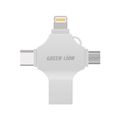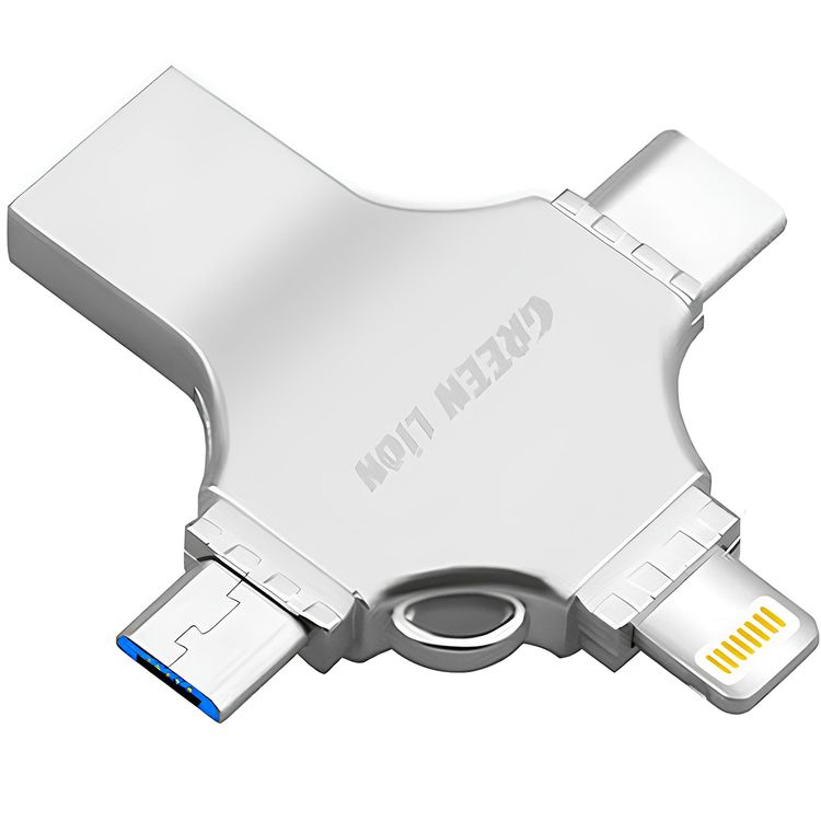 Green Lion 4-in-1 USB Flash Drive 256GB with High Speed Data Transfer, USB-A, USB-C, Micro USB & Lightning Connectors - Silver