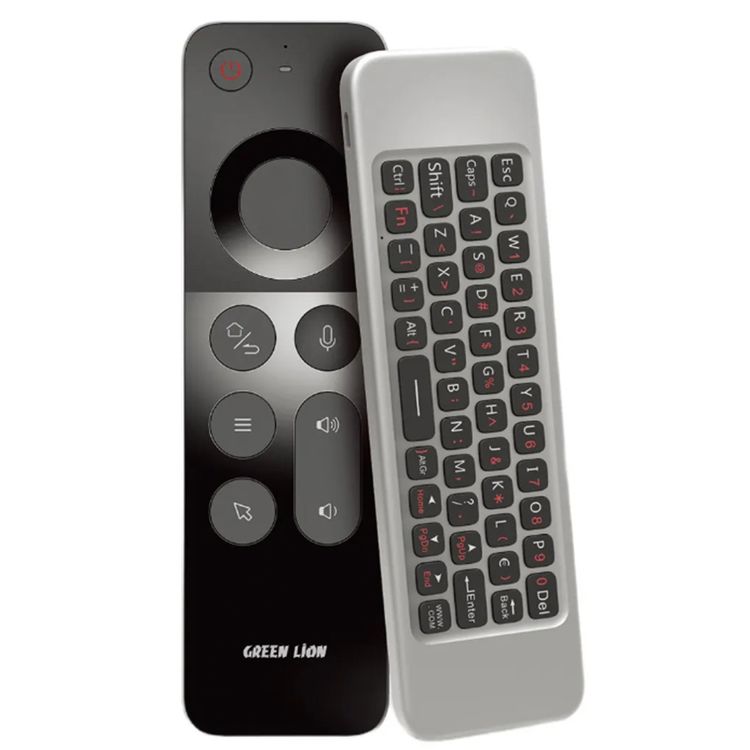 Green Lion 4-in-1 Wireless Remote With Wireless Keyboard, Air Mouse, IR Remote, Voice Control, 250mAh Battery, ABS Material, IR & 2.4GHz RF Connectivity, 58 Keys, 8-12m Control Range, Type-C Charging Port, 1.5 Hours Charging Time, 20 Days Working Time - Black