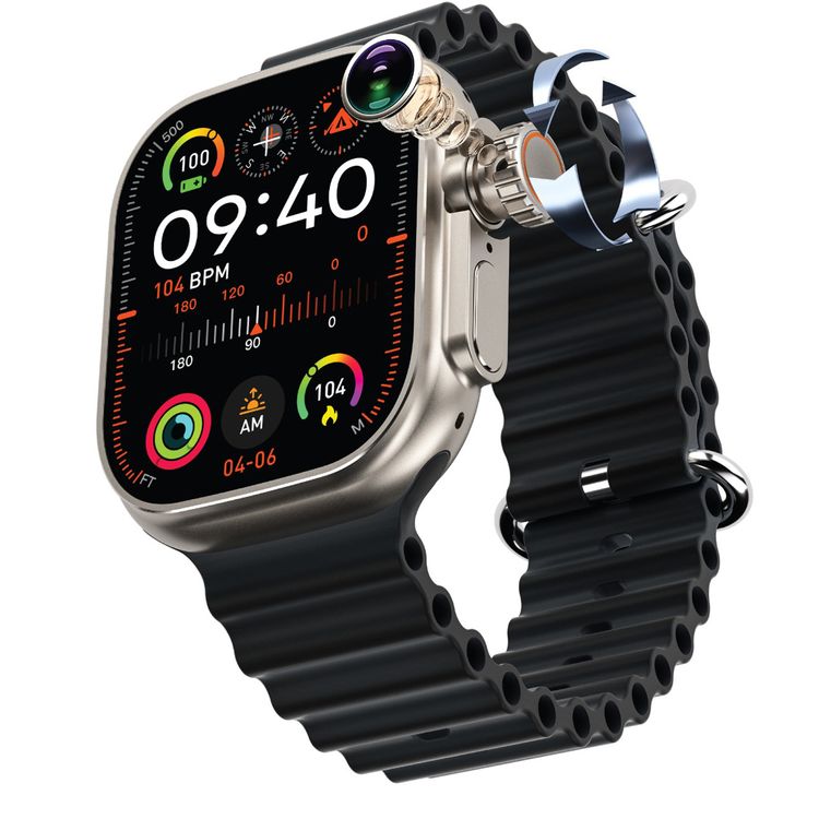 Green Lion 4G Ultra Smart Watch Android with Black Strap, 360° Rotatable Camera, Face Recognition, Android 8.1 OS, GPS Support, Magnetic Charging - Titanium
