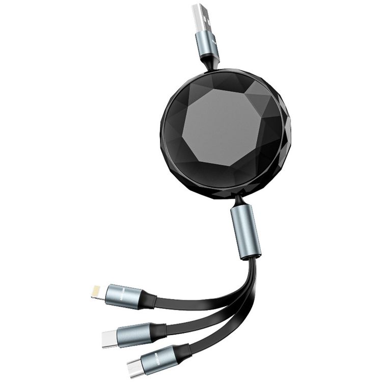 Green Lion 5-in-1 Diamond Retractable Cable with USB-C to USB-C & Lightning, USB-A to USB-C & Lightning Connections, 1.2m Length, 60W Charging, 480Mbps Data Transfer Rate, 10000 Bends Lifespan - Black
