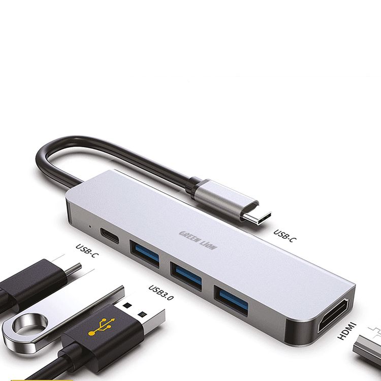 Green Lion 5 in 1 Type-C Adapter 4K - Gray