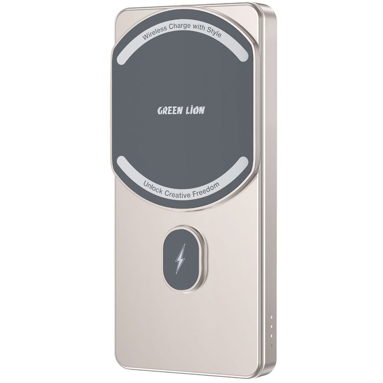 Green Lion 5000mAh Milton Powerbank with Pure Cobalt Battery, 15W Wireless Charging, Strong Magnetic, Smart Chip - Titanium