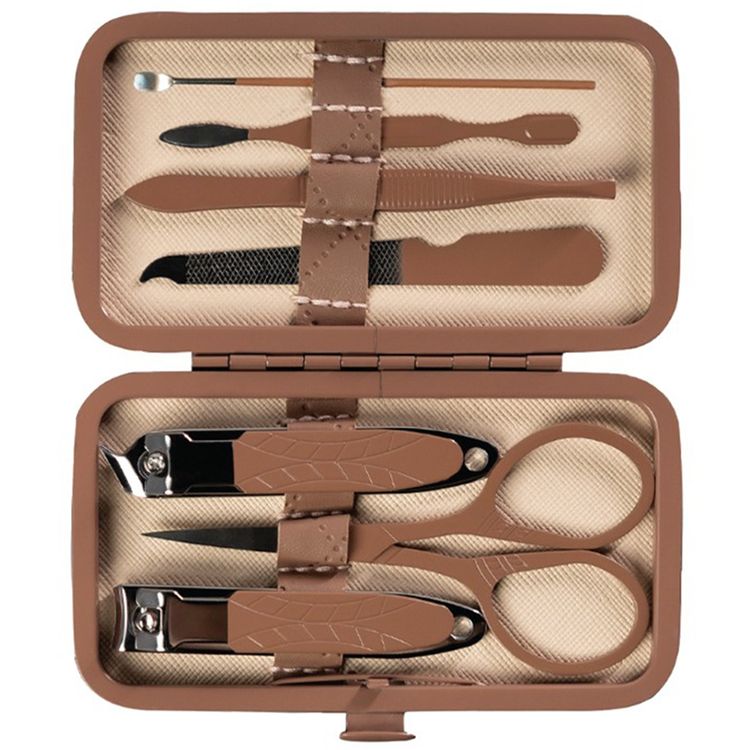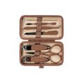 Green Lion 7-in-1 Manicure Kit with Ear Pick, Cuticle Pusher, Nail Cleaner, Tweezers, Nail Scissors, Small Nail Clipper & Large Nail Clipper, Non-Slip Texture, Leather, Glass & Plastic Material - Brown