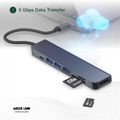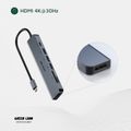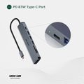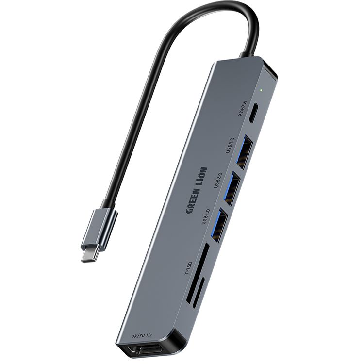 Green Lion 7-in-1 USB-C Hub with 3× USB-A, HDMI, TF/SD Card & USB-C Ports, Aluminum Alloy Material, 4K@30Hz Resolution, 5 Gbps Data Transfer, 16.7cm Cable Length - Gray