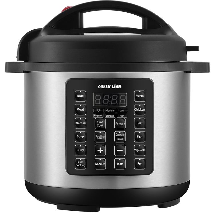 Green Lion Electric Pressure Cooker with 8L Capacity & 24cm Diameter, 14 Cooking Modes, 24-Hour Preset Function, One Button Control, Digital Display, Auto-Warm Function, Energy Efficient, Easy-to-Use, Stainless Steel Material - Black