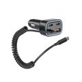 Green Lion 90W Car Charger with Dual PD, 1.2m Built-in USB-C Cable, 45W PD in 30 Minutes, QC 30W USB-A, On-the-Go Convenience, Simultaneous Charging, Soft Ambient LED, Safety Protection, 2-USB-C Ports - Gray