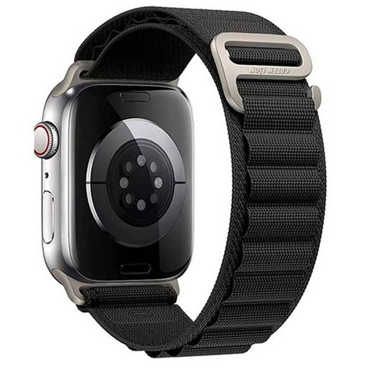 Green Lion Alpine Loop Nylon Strap for iWatch, Comfortable Wearing, Premium Material, Compatible with Apple Watch 42/44/45/49 mm, Available in Various Colors - Black