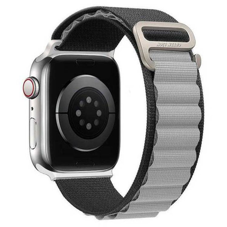 Green Lion Alpine Loop Nylon Strap for iWatch, Comfortable Wearing, Premium Material, Compatible with Apple Watch 42/44/45/49 mm, Available in Various Colors - Gray / Black