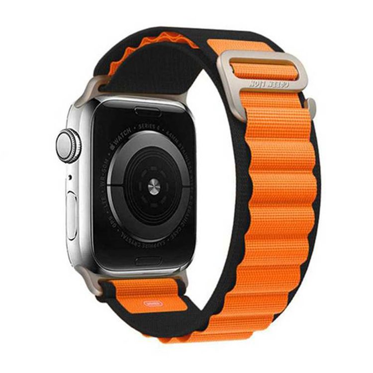Green Lion Alpine Loop Nylon Strap for iWatch, Comfortable Wearing, Premium Material, Compatible with Apple Watch 42/44/45/49 mm, Available in Various Colors - Black / Orange