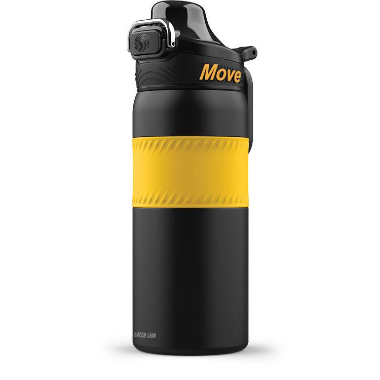 Green Lion Athlete Thermal Bottle, 550 mL Capacity, 12 Hours Thermal Efficiency, 14 Hours Cooling Efficiency, Easy Press Button, 360°-Anti-Corrosion, Non-Slip Grip - Yellow