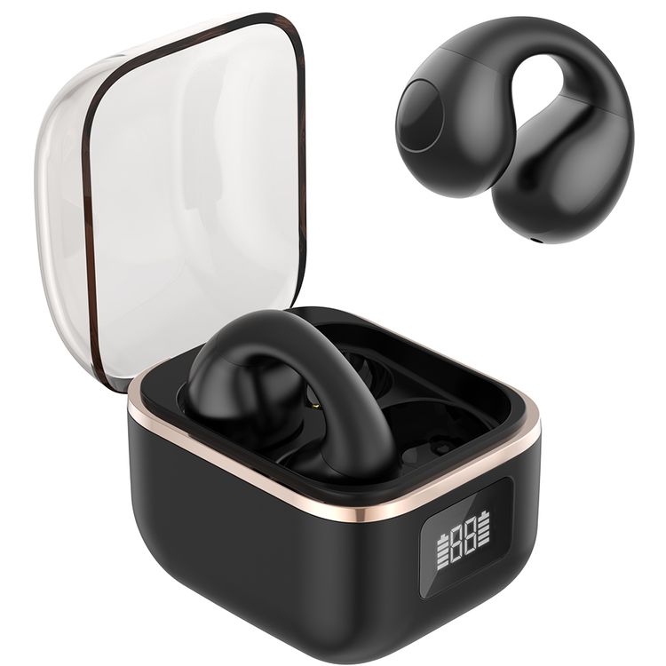 Green Lion Aurix Clip-On Earbuds with Digital Display & Touch Control, Up to 4 Hours Play Time, 300mAh Charging Case Battery & 30mAh Earbuds Battery, Dual Microphones, USB-C Charging Port, Bluetooth Version 5.4 - Black