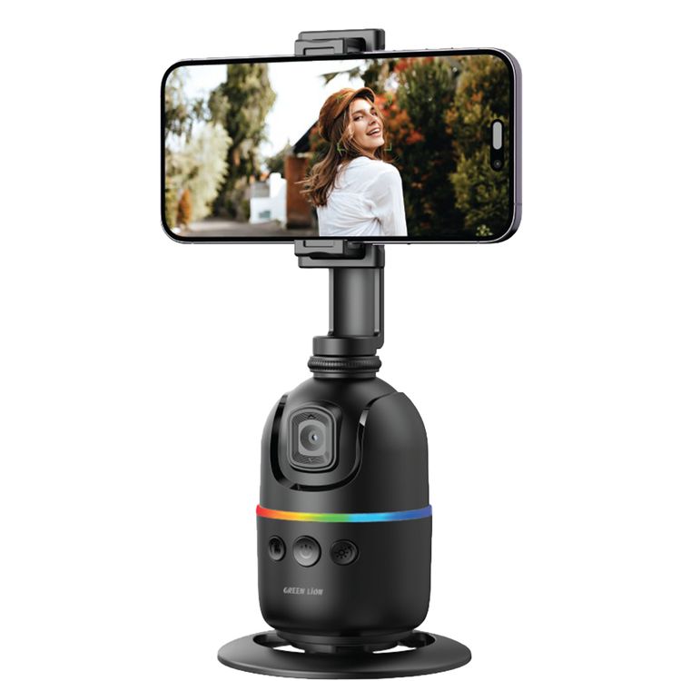 Green Lion Auto Track Gimbal, Multi-Device Support, Face Tracking, Gesture Detection, 3W Power, 1200mAh Battery, 1-4m Range, 6.5-9.5cm Phone Holder, Type-C Charging Port - Black