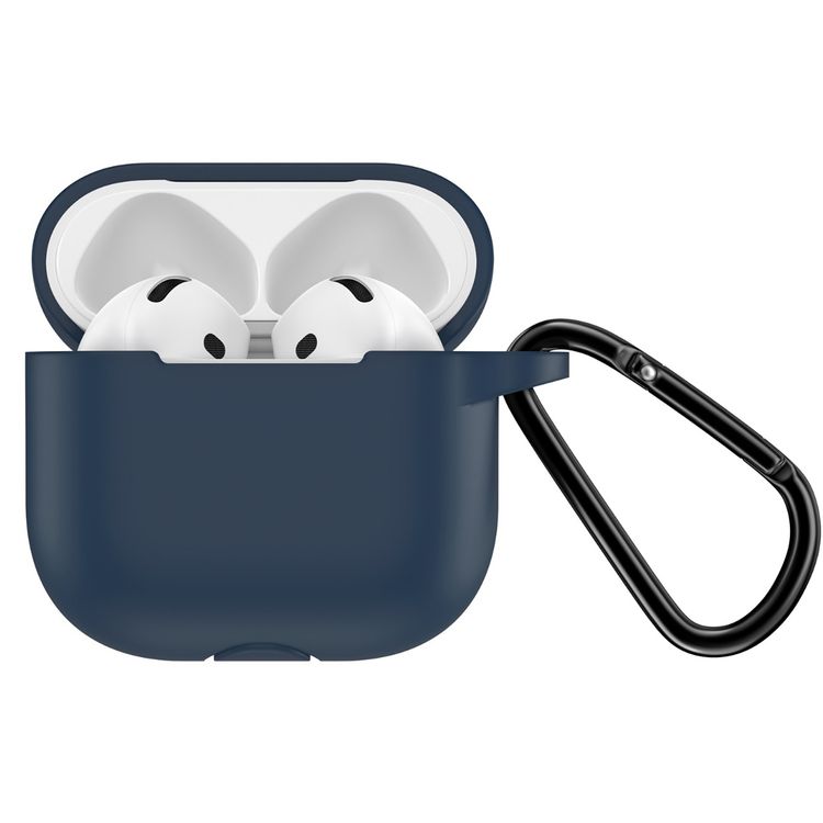 Green Lion Berlin Series Silicone Case for Airpods 4, Metal Carabiner, 360° Full Protection, Shock Absorbent, Skin Friendly Silicone, Washable Material - Blue