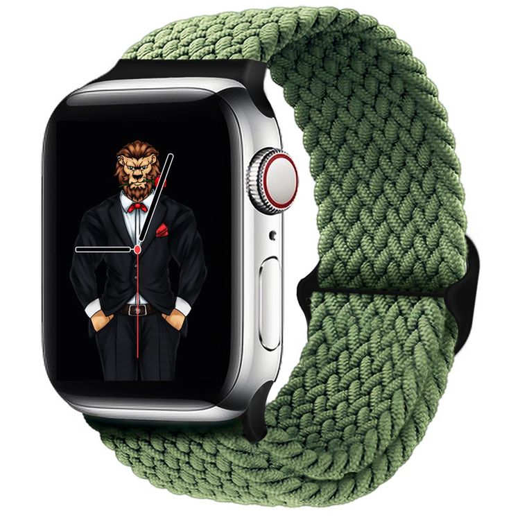 Green Lion Braided Solo Loop Watch Strap for Apple Watch 38/40mm, Adjustable Strap, Soft & Comfortable Fit, Easy Installation - Green