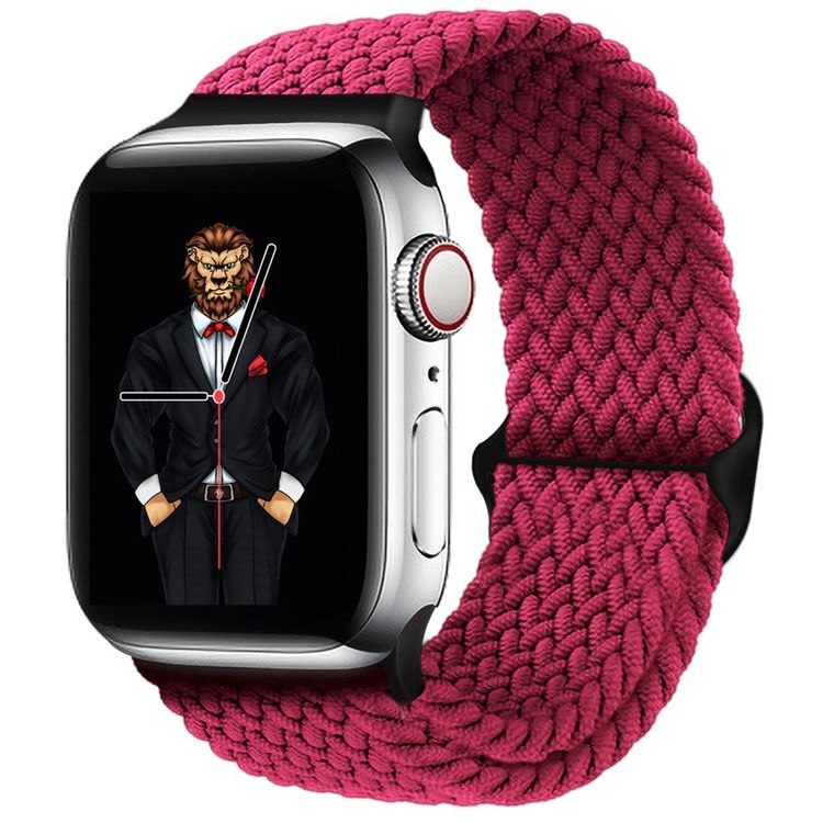 Green Lion Braided Solo Loop Watch Strap for Apple Watch 38/40mm, Adjustable Strap, Soft & Comfortable Fit, Easy Installation - Wine Red