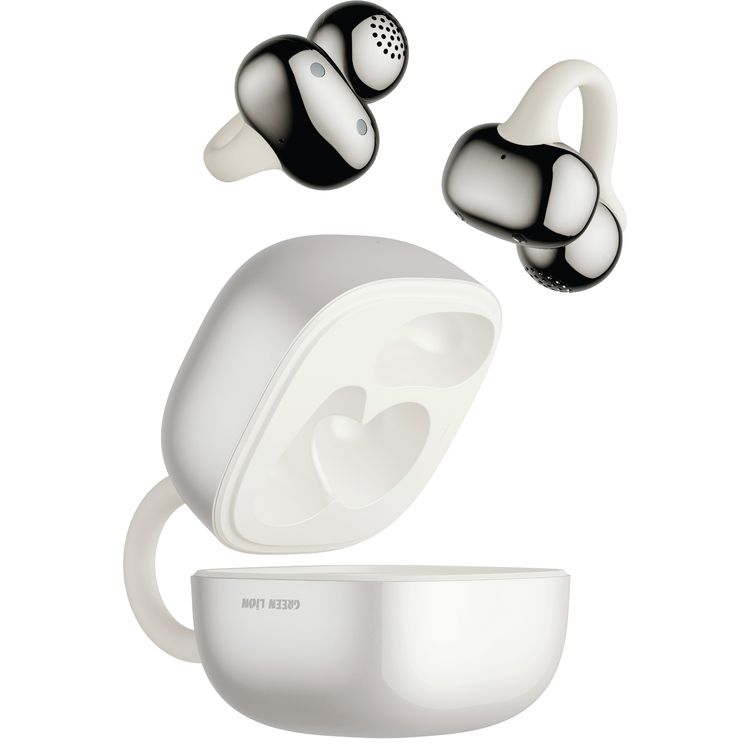 Green Lion Cambridge Wireless Earbuds with 16 Hours Play Time, Bluetooth Version 6.0, ENC Calls, Titanium Alloy, Open-Ear Clip-On Design, IPX4 Water Resistance Level, USB-C Charging Port, 2 Hours Charging Time, 80 Hours Standby Time - White