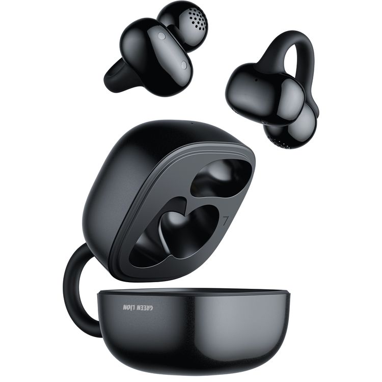Green Lion Cambridge Wireless Earbuds with 16 Hours Play Time, Bluetooth Version 6.0, ENC Calls, Titanium Alloy, Open-Ear Clip-On Design, IPX4 Water Resistance Level, USB-C Charging Port, 2 Hours Charging Time, 80 Hours Standby Time - Black