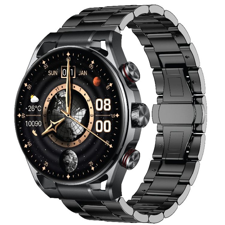 Green Lion Chrono Pro Smart Watch with 1.6" AMOLED Display, 360mAh Battery, Up to 7 Days Working Time, 1000nits Brightness, Activity Tracking, Health Monitoring, Stop Watch & Alarm Clock - Black