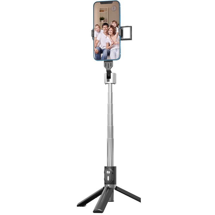Green Lion Click 2 Selfie Stick with Up to 110cm Adjustable Length, 4.7"-7" Mobile Compatibility, Quadruped Support, Diversified Bracket, 65-90mm Holding Width - Black