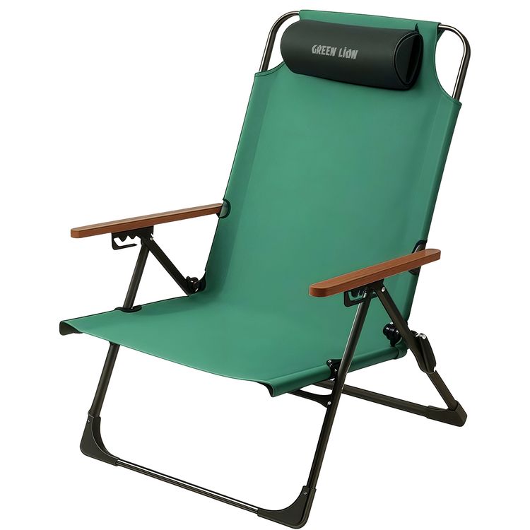 Green Lion Coast Adjustable Camping Chair with Tear Resistant, Lightweight Design, Breathable Fabric, Durable Construction, Anti-Slip Foot Base, Foldable Design, 4 Adjustable Angles, Removable Pillow, Quick Setup - Green