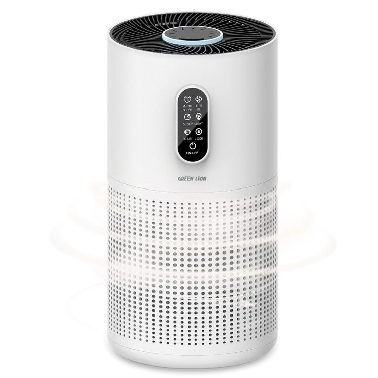 Green Lion Compact Air Purifier with 3-in-1 Filtration, 22W Rated Power, Up to 22m² Coverage Area, 3 Fan Speeds, Quiet Operation, Touch Display, Child-Lock Function, ABS Material, 4 Timer Options - White