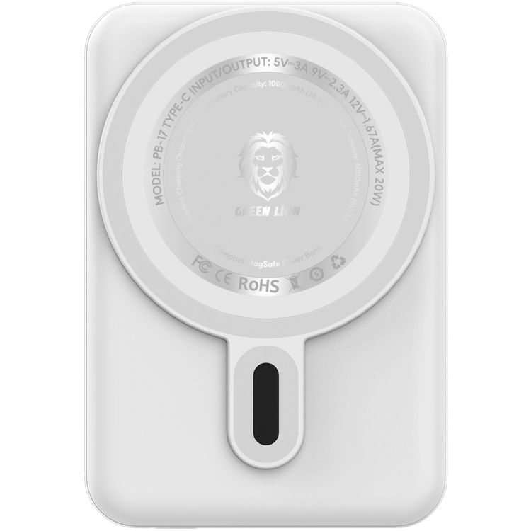Green Lion Compact Magsafe Powerbank 10000mAh 15W PD 20W with Kick Stand - White