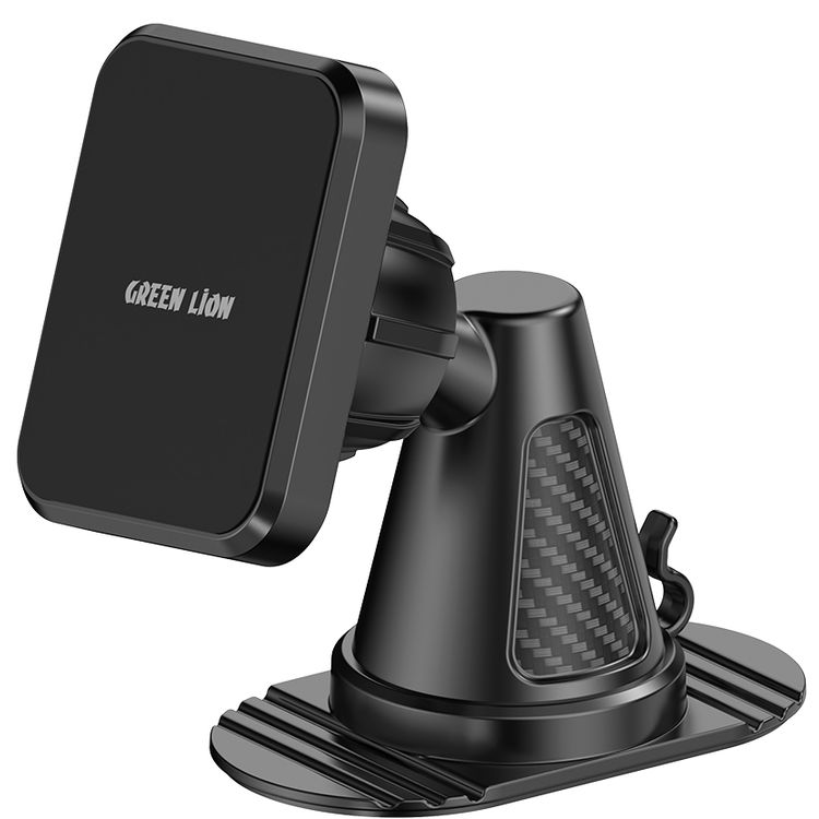 Green Lion Dash Force Magnetic Car Holder, 360° Rotation, One-Hand Operation, Built-in Cable Hook, 3M Adhesive Base - Black