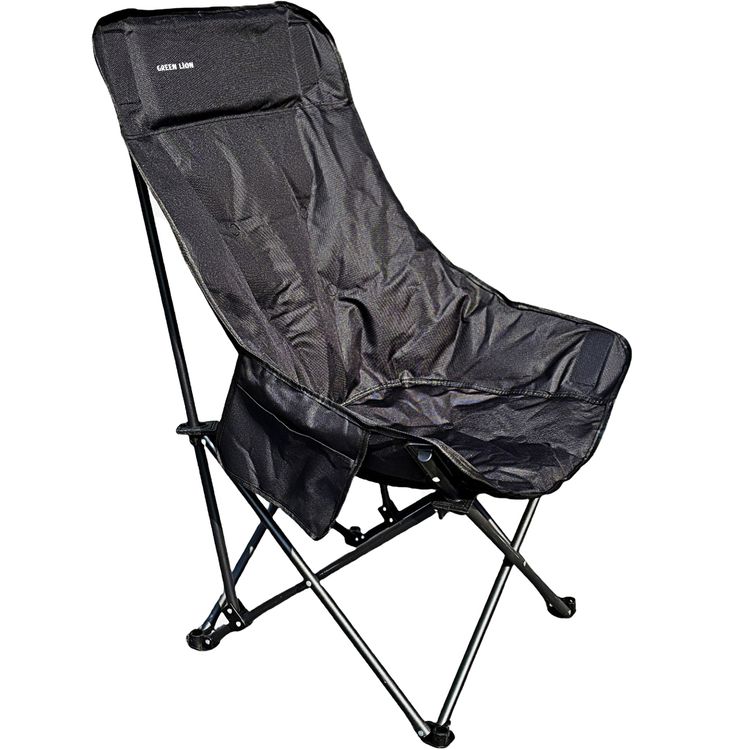 Green Lion Desert Ranger Camping Chair with Storage Bag, Foldable Design, Heightened Backrest, Anti-Slip Feet, Padded Seats, Up to 120Kg Load Capacity - Black