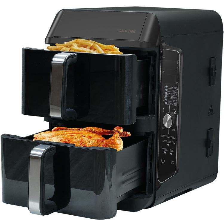Green Lion Double-Decker Pro Digital Air Fryer with 2× 5.6L Capacity, 6 Preset Programs, 2400W Power, PP + Aluminum + ABS & PC Material, 0-60 Minutes Frying Time, Up to 230°C Temperature, BS Plug 90cm Power Cord, LED Touch Display - Black