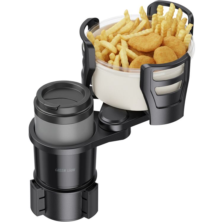 Green Lion Drive Flex 2-in-1 Cup Holder with 360° Free Rotation, Universal Car Fit, Adjustable Side Arms, Durable Construction, Easy to Clean, Expandable Food Tray, Easy Installation, 1kg Maximum Load Capacity - Black