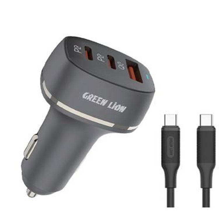 Green Lion Car Charger with Dual PD & Single QC3.0 Ports, USB-C to USB-C Cable, 50W Power up Safety, Multi Protection, Ultra Portable, Fast Charging - Black