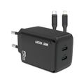 Green Lion Dual PD Wall Charger with USB-C to Lightning Cable, 1m Cable Length, Dual Type-C Ports, EU Power Plug, Charging Protection, Flame Retardant PC, Fast Charging, Universal Compatibility - Black