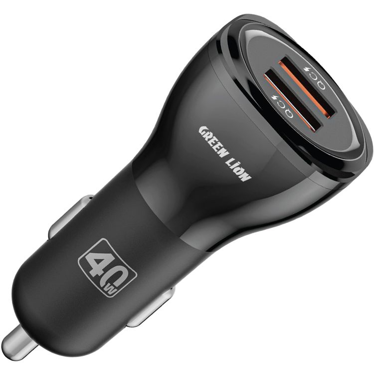 Green Lion Dual QC3.0 Car Charger with PC Flame Retardant, 40W Power Output Max, Fast Charging, Multiple Protection, Ultra Portable, Compact Design - Black