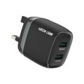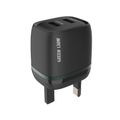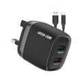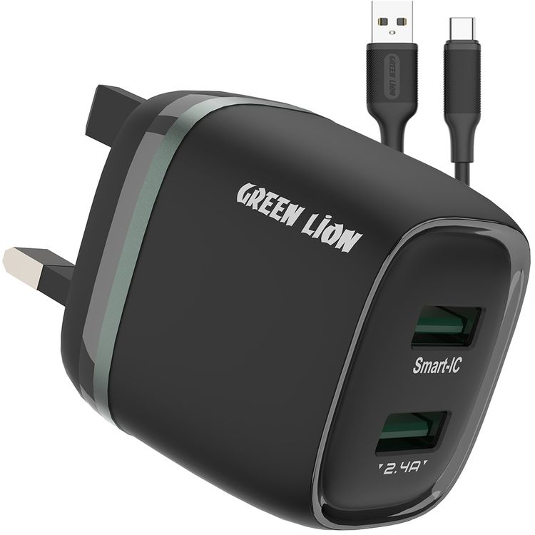 Green Lion Dual Port Wall Charger with USB-A to Type-C Cable Type, 1m Cable Length, 3-Pin UK Plug, 12W Power, 2.4A Fast Charging, ×2 USB-A Ports, Charging Protection, Multi-Device Charging, Portable Design - Black