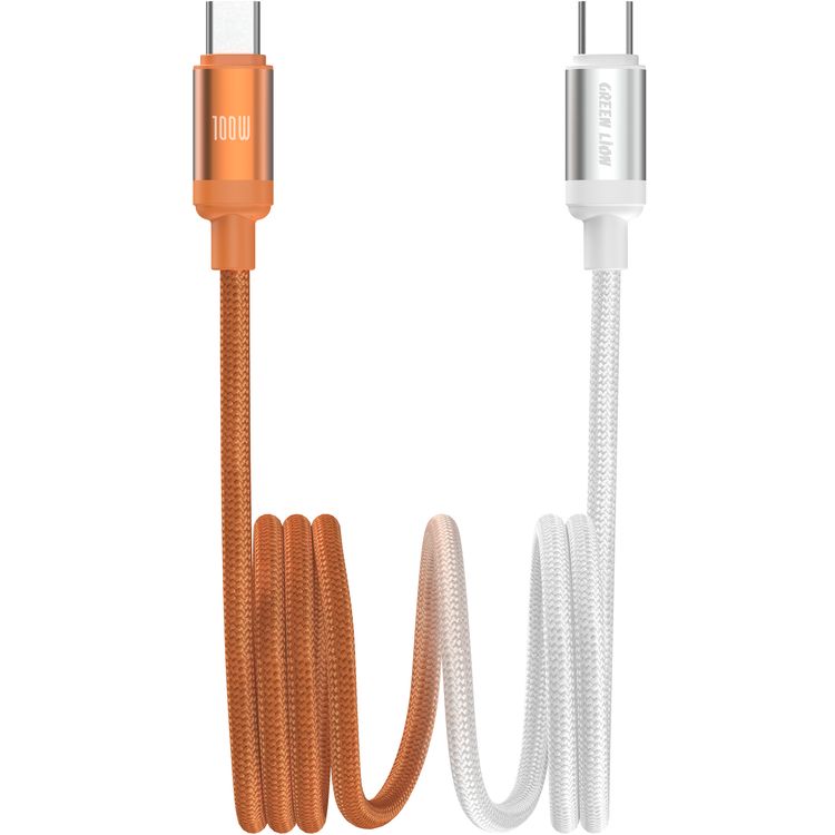 Green Lion Duo Color Braided USB-C to USB-C Cable with 480Mbps Data Transfer Speed, 1m Cable Length, Laptop Compatible, Charge & Sync, Aluminum Alloy Shell Connector, Two-Tone Gradient Design - Orange