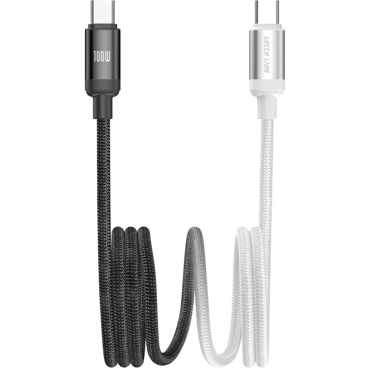Green Lion Duo Color Braided USB-C to USB-C Cable with 480Mbps Data Transfer Speed, 1m Cable Length, Laptop Compatible, Charge & Sync, Aluminum Alloy Shell Connector, Two-Tone Gradient Design - Black