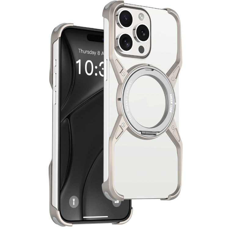 Green Lion Edge X MagSafe Bezel Less Case for iPhone 16 Pro, 360° Rotation, Raised Edges, Frameless, Kick Stand Design - Natural Titanium