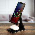 Green Lion Foldable Wireless Charging Stand with 15W Wireless Output, Type-C Interface, 3W TWS Output, Ultra-Stable, Foldable Design, Fast Wireless Charging - Black