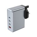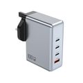 Green Lion GaN UK Plug Wall Charger with 100W Power Delivery, 0%-50% Charge in 30 Minutes, PC Flame Retardant Material, Multiple Protection, USB-C & USB-A Ports - Gray