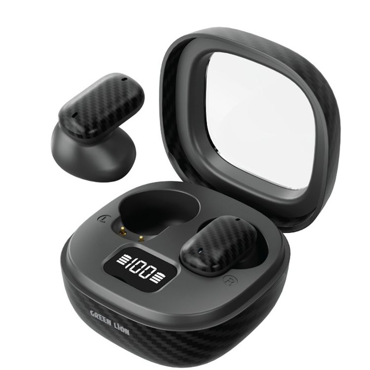 Green Lion Geneva True Wireless Earbuds with Dual Microphones, Up to 4 Hours Play Time, Bluetooth Version 5.4, 10m Transmission Range, USB-C Charging Port, Voice Assistant, Digital Display & Touch Controls, Up to 180 Days Standby Time - Black