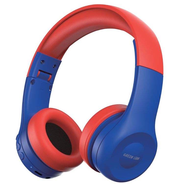 Green Lion Gk-100 Kid Wireless Headphones with High-quality Audio Clarity, Kid-Friendly, Built-in AUX Option, 40mm Driver Size, 15 Hours Playtime, Less than 2 Hours Re-charge Time, Lightweight, 10m Bluetooth Range - Blue/Red