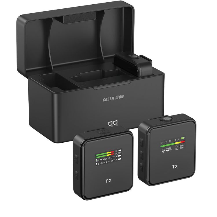 Green Lion GLM-Professional Wireless Microphone with Digital Display, Furry Wind Muff, HD Radio, Noise Reduction, Real-Time Monitoring, Full Directional, Up to 30m Transmission Distance - Black