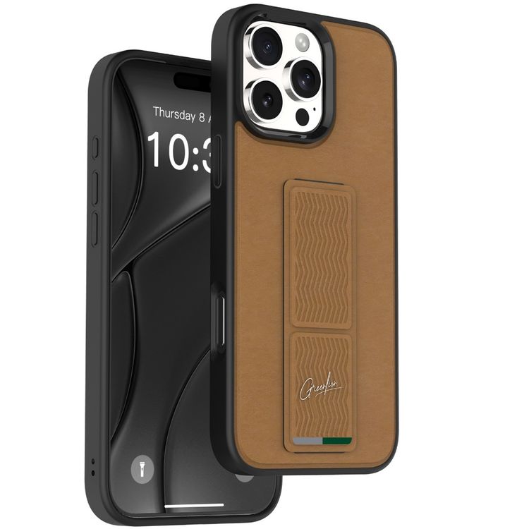 Green Lion Gripx Multi-Functional Kickstand Case for iPhone 16 Pro, Soft Touch, Anti Scratch, Drop Protection, Raised Edges, Camera Protection - Brown